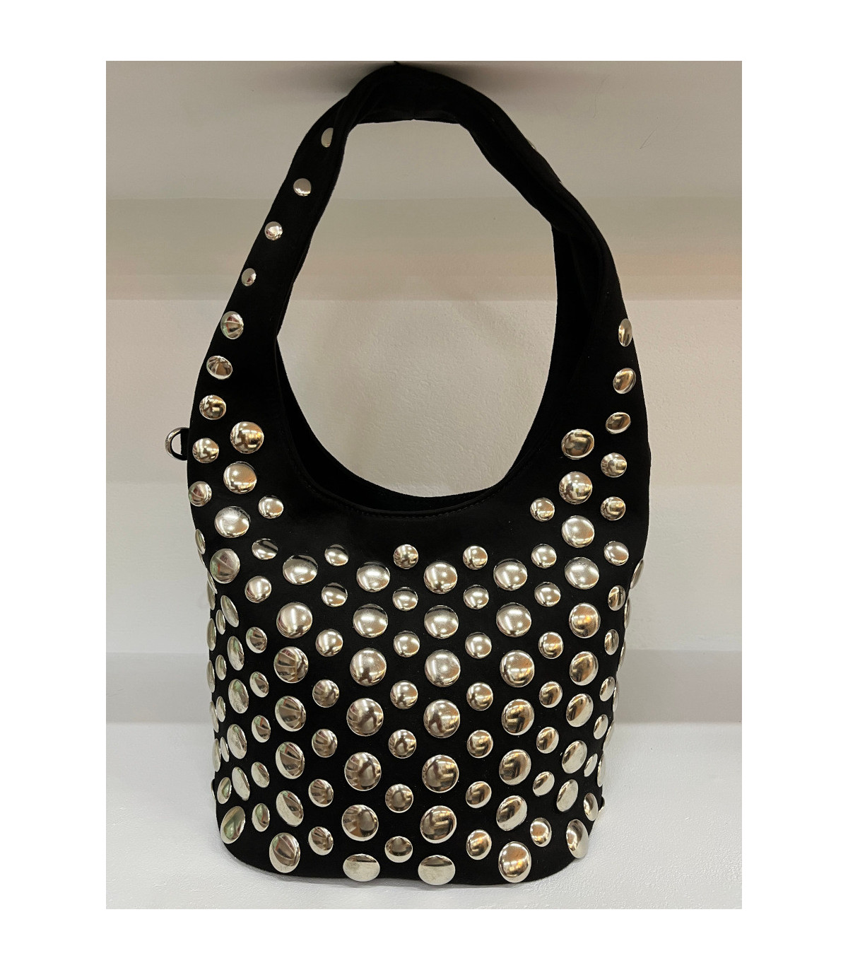 Bolso de hombro en tejido efecto ante, disponible en color negro.